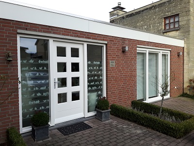 U vindt de pedicurepraktijk naast de woning op de begane grond.